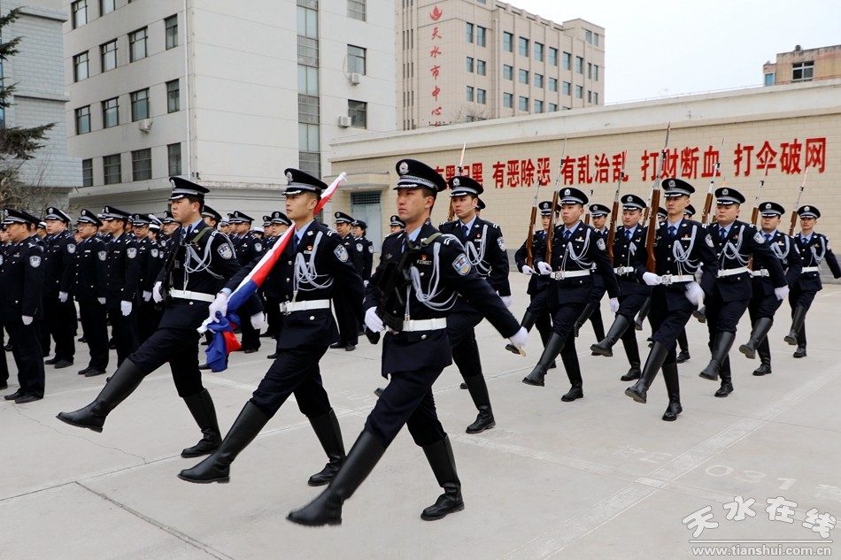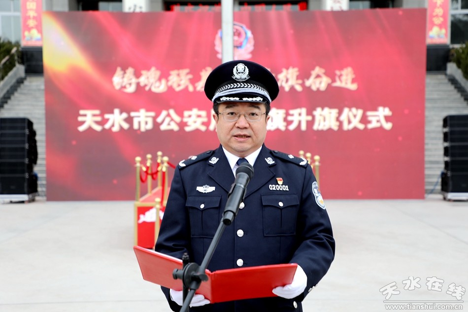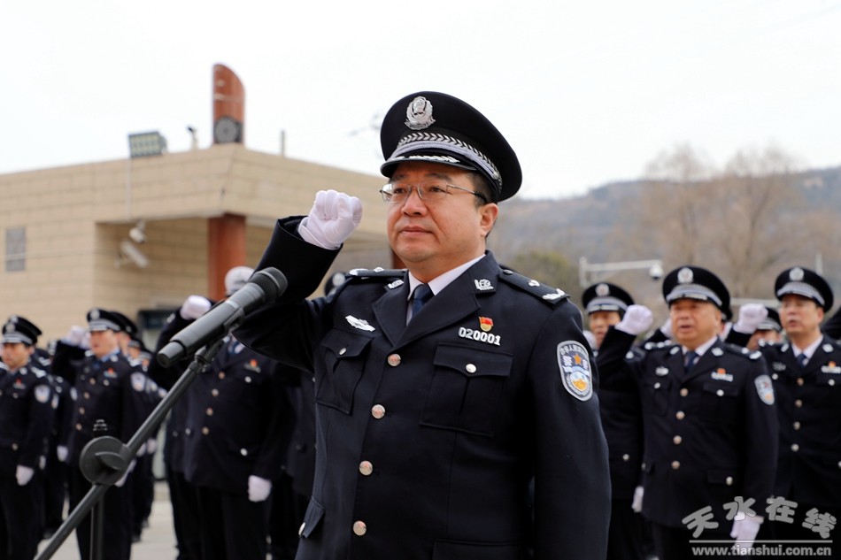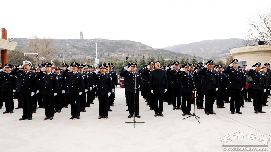 省公安廳森林公安局小隴山分局和市公安局機(jī)關(guān)、交警支隊、特警支隊、秦州分局、麥積分局民警代表參加升旗儀式。