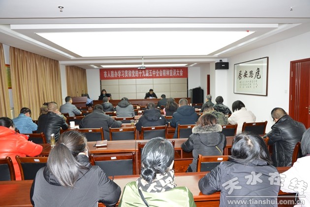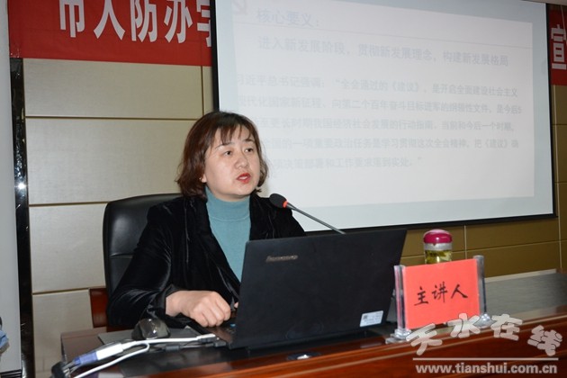 1月8日下午,天水市人民防空辦公室舉辦學(xué)習(xí)貫徹黨的十九屆五中全會精神宣講會,邀請市委黨校黨史黨建教研室講師、市委講師團成員劉巖老師進行了宣講,市人防辦全體干部職工、并邀請結(jié)對共建的秦州區(qū)五里鋪社區(qū)宇航黨支部的全體黨員參加了本次宣講會。