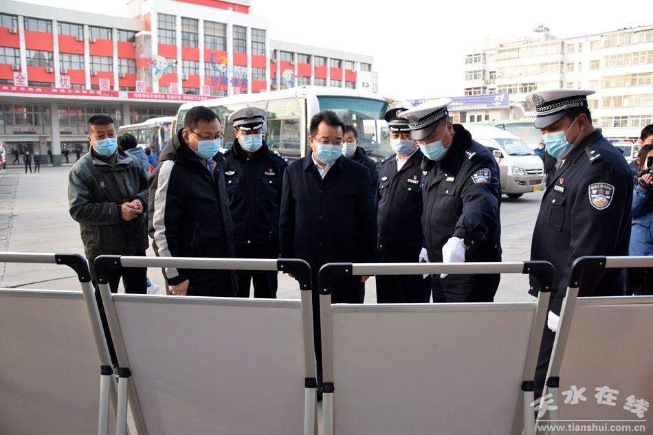 郭慶祥一行先后來到天水汽車總站、天水西客站、天水高速西出口等地,實地檢查了春運首日各重點場所疫情防控、安檢措施以及春運期間車輛、旅客的流量和沿線道路交通安全管理等情況,并對做好2021年全市春運交通安全保障工作提出了具體要求。