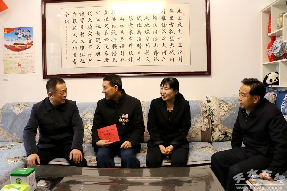 2月7日,天水市人大常委會(huì)主任蔣曉強(qiáng)帶領(lǐng)市直相關(guān)單位負(fù)責(zé)同志赴武山縣開(kāi)展春節(jié)前“送溫暖”慰問(wèn)活動(dòng),代表市四大組織看望慰問(wèn)特困戶(hù)、低保戶(hù)、文明戶(hù)、殘疾人、老黨員、困難職工、困難勞模、道德模范、優(yōu)撫對(duì)象和困難企業(yè),為他們送去黨和政府的關(guān)懷和溫暖,祝愿他們過(guò)一個(gè)歡樂(lè)祥和的春節(jié)。