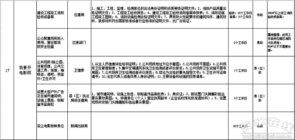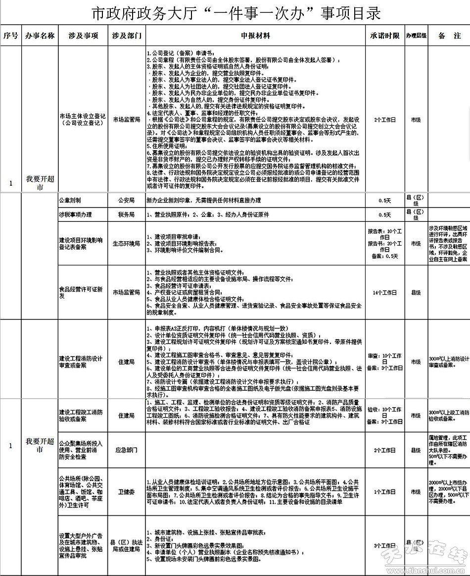 天水市政府政務大廳“一件事一次辦”事項目錄