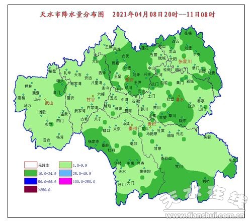 4月8日20時至4月11日08時,各地降水情況統(tǒng)計如下: