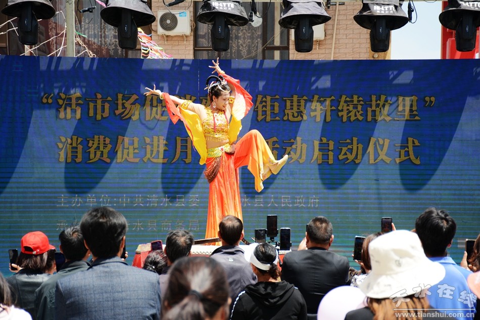 4月30日,清水縣舉行“活市場促消費、鉅惠軒轅故里”消費促進月系列活動啟動儀式。貫徹國家、省市關(guān)于促消費、擴內(nèi)需和經(jīng)濟社會發(fā)展的部署要求,落實全國消費促進月相關(guān)精神,進一步提振消費信心,釋放消費潛力。在啟動儀式上,天水在線主播萌萌應(yīng)邀表演了“麥積飛天”。