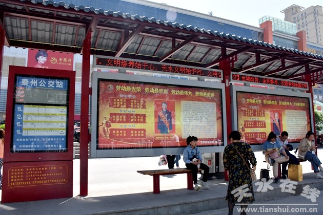 “勞動(dòng)最光榮,勞動(dòng)最崇高,勞動(dòng)最偉大,勞動(dòng)最美麗!”5月1日國際勞動(dòng)節(jié)當(dāng)天,不少天水市民欣喜地發(fā)現(xiàn),市區(qū)主干道建設(shè)路、民主路、大眾路兩旁公交站宣傳欄上都是全國、省市勞動(dòng)模范和先進(jìn)工作者的照片和事跡,成為城市節(jié)日期間一道亮麗的風(fēng)景線。