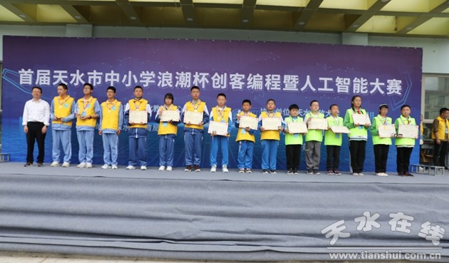本屆比賽由天水市教育局主辦,大賽主題是“智能時(shí)代、逐夢(mèng)成長(zhǎng)”,貫徹落實(shí)教育部《教育信息化2.0行動(dòng)計(jì)劃》精神,分設(shè)小學(xué)組、初中組、高中組,經(jīng)過(guò)現(xiàn)場(chǎng)創(chuàng)作、作品展示、現(xiàn)場(chǎng)問(wèn)答等環(huán)節(jié),提交編程和創(chuàng)客112件作品,經(jīng)過(guò)兩天緊張激烈的比賽,對(duì)比賽項(xiàng)目進(jìn)行了初評(píng)、復(fù)評(píng)和終評(píng),共有 21名學(xué)生獲得一等獎(jiǎng),39名學(xué)生獲得二等獎(jiǎng),39名學(xué)生獲得三等獎(jiǎng),秦州區(qū)教育局和張家川縣教育局獲得優(yōu)秀組織獎(jiǎng),3名老師獲得優(yōu)秀輔導(dǎo)獎(jiǎng)。聘請(qǐng)西北師大陳輝副教授和范滿紅博士擔(dān)任裁判長(zhǎng)。