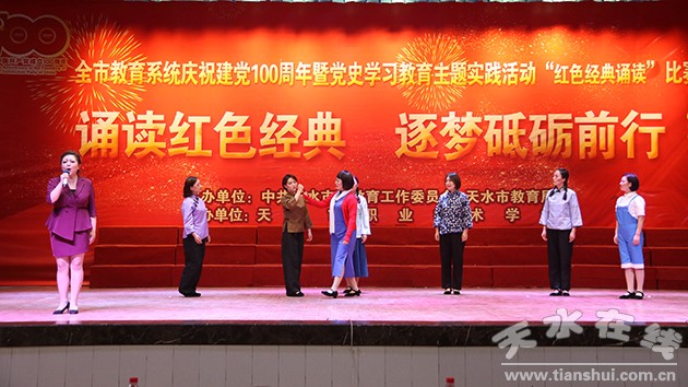 為慶祝中國(guó)共產(chǎn)黨建黨100周年,深入開展黨史學(xué)習(xí)教育,激勵(lì)廣大黨員干部師生以飽滿的熱情歌頌黨、歌頌祖國(guó),充分展現(xiàn)新時(shí)代師生銳意進(jìn)取、砥礪奮進(jìn)的精神風(fēng)貌。5月21日,由市委教育工委、市教育局主辦,市職業(yè)技術(shù)學(xué)校承辦的全市教育系統(tǒng)慶祝建黨100周年暨黨史學(xué)習(xí)教育主題實(shí)踐活動(dòng)“紅色經(jīng)典誦讀”比賽在市職業(yè)技術(shù)學(xué)校舉行。市教育局局長(zhǎng)沈建玲、市委教育工委副書記、市教育局副局長(zhǎng)張秀麗及市職校黨委領(lǐng)導(dǎo)出席比賽活動(dòng)并為獲獎(jiǎng)節(jié)目頒獎(jiǎng)。