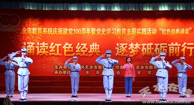 天水市實(shí)驗(yàn)小學(xué)的《紅船,從南湖起航》拉開了誦讀比賽的序幕,參賽選手伴著婉轉(zhuǎn)的旋律,和著鏗鏘有力的節(jié)拍,聲情并茂地朗誦了《秋瑾》、《乳娘》、《永遠(yuǎn)的九歲》、《祖國(guó)啊,我親愛的祖國(guó)》、《紅巖魂·江姐》、《英雄的黎明》、《不朽的軍魂》等紅色經(jīng)典內(nèi)容,他們用慷慨激昂、精神飽滿的朗誦,傾訴著對(duì)祖國(guó)母親、對(duì)中國(guó)共產(chǎn)黨的感激和熱愛之情。用一段段感人的故事,一曲曲英雄的贊歌,生動(dòng)再現(xiàn)了中國(guó)共產(chǎn)黨波瀾壯闊的百年征程和歷久彌堅(jiān)的百年初心,謳歌中國(guó)共產(chǎn)黨為國(guó)家為人民為民族建立的豐功偉績(jī),參賽選手精彩紛呈地表演贏得了在場(chǎng)觀眾及評(píng)委的熱烈掌聲。
