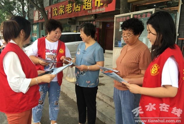 (秦州區(qū)天水郡街道暖和灣社區(qū)新時(shí)代文明實(shí)踐站組織志愿者開展創(chuàng)建全國文明城市宣傳活動(dòng))