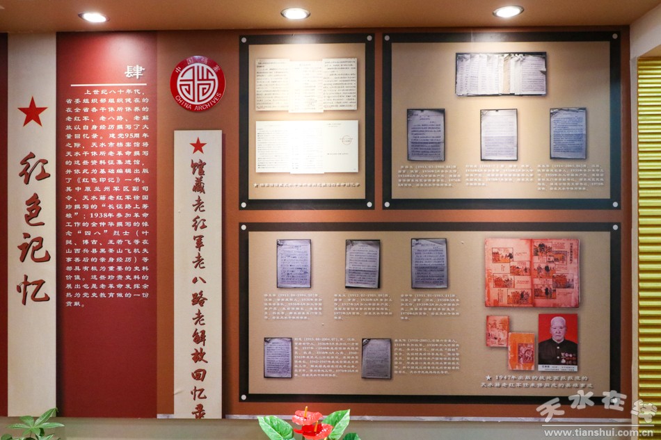《紅色印記——天水市檔案系統(tǒng)館藏紅色檔案文獻(xiàn)展》是市檔案館征集到早期天水籍共產(chǎn)黨人以及共產(chǎn)黨人在天水活動的檔案資料,紅軍長征過境以及解放大軍解放天水挺進(jìn)西北相關(guān)資料,老紅軍、老八路、老解放崢嶸歲月的回憶資料,并對這些資料進(jìn)行挖掘梳理,以展覽的形式再現(xiàn)了1921至1949年中國共產(chǎn)黨在天水這片紅色沃土上的光輝歷程。展覽共分隴右星火、鐵流過境、文獻(xiàn)留史、紅色記憶四個部分,展出檔案圖片資料100多幅。 (新天水訊【記者趙蔓】 攝影:天水在線)