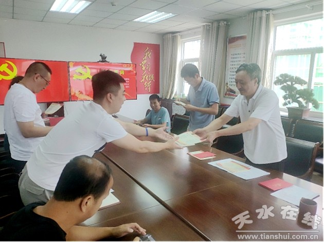 為扎實(shí)推進(jìn)黨史學(xué)習(xí)教育,傳承紅色基因,增強(qiáng)黨員意識(shí)。8月4日,市圖書館黨支部開展了“政治生日憶初心 砥礪前行擔(dān)使命”主題黨日活動(dòng)。第一項(xiàng)是集中學(xué)習(xí)。組織全體黨員集中學(xué)習(xí)中共中央政治局關(guān)于分析研究當(dāng)前經(jīng)濟(jì)形勢(shì)和經(jīng)濟(jì)工作會(huì)議精神、《中國共產(chǎn)黨章程》《中共天水市文化和旅游局直屬機(jī)關(guān)委員會(huì)關(guān)于進(jìn)一步規(guī)范黨員佩戴黨員徽章的通知》等;第二項(xiàng)是為黨員集體過“政治生日”。支部書記、館長靳永紅同黨員開展了集體談心談話、發(fā)放政治生日賀卡,黨員做自我總結(jié),最后全體黨員莊嚴(yán)面對(duì)黨旗,進(jìn)行入黨宣誓,重溫入黨誓詞。整個(gè)活動(dòng)準(zhǔn)備扎實(shí)、會(huì)風(fēng)嚴(yán)謹(jǐn)、氣氛熱烈,活動(dòng)達(dá)到了預(yù)定目的,取得了實(shí)效。