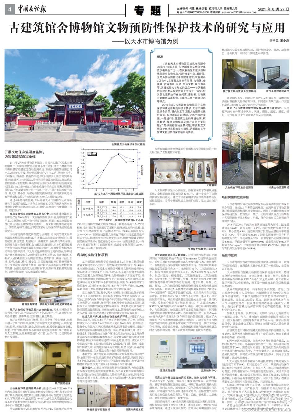 古建筑館舍博物館文物預(yù)防性保護技術(shù)的研究與應(yīng)用——以天水市博物館為例