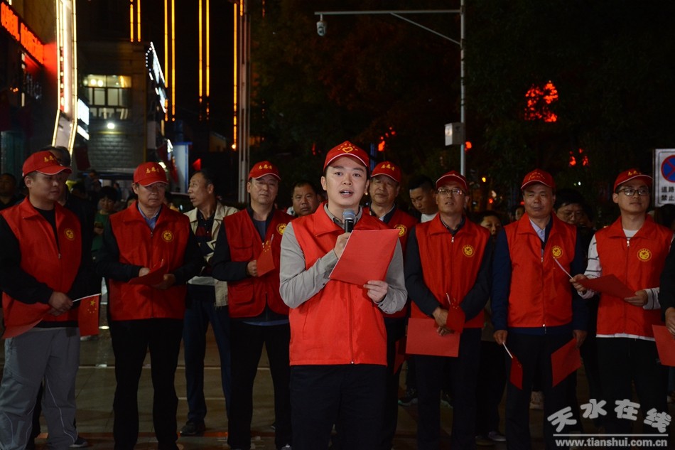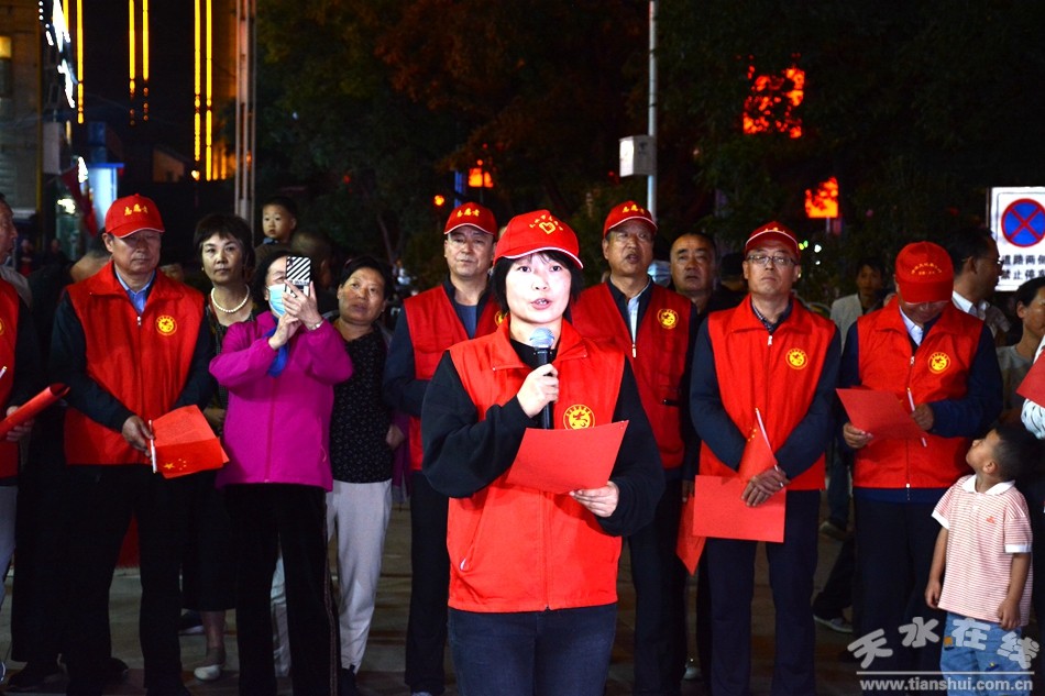 9月23日晚,由天水市委政法委主辦,市文旅局、天水在線承辦的 “慶國慶·宣創(chuàng)城”快閃活動(dòng)在市委政法委“包街”責(zé)任路段秦州區(qū)大眾南路順利舉行。本次活動(dòng)旨在傳遞文明、助力創(chuàng)城,營造人人參與創(chuàng)城行動(dòng)、人人共享創(chuàng)城成果的濃厚創(chuàng)城氛圍。