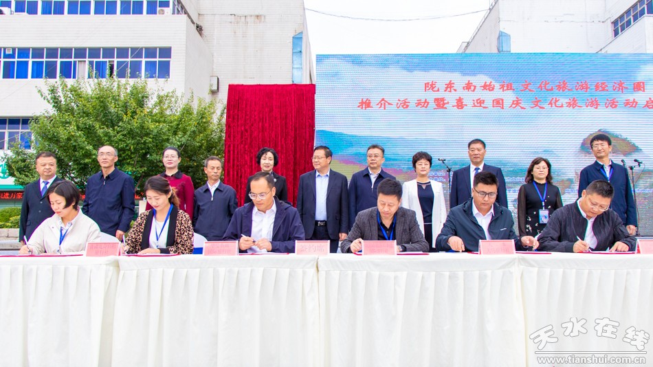 啟動(dòng)儀式上,天水市文化和旅游局局長(zhǎng)、二級(jí)巡視員李玉進(jìn)代表隴東南五市旅游聯(lián)盟宣讀了《隴東南始祖文化旅游經(jīng)濟(jì)圈聯(lián)動(dòng)發(fā)展宣言》,天水市文化和旅游局副局長(zhǎng)劉宗林介紹了天水國(guó)慶期間文化旅游重點(diǎn)活動(dòng),與會(huì)省市領(lǐng)導(dǎo)及隴東南五市文旅局負(fù)責(zé)人共同啟動(dòng)隴東南始祖文化旅游經(jīng)濟(jì)圈暨喜迎國(guó)慶文化旅游活動(dòng)。