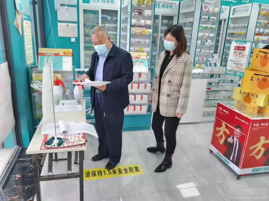 10月20日,天水市市場監(jiān)管局召開新冠疫情防控領(lǐng)導(dǎo)小組(擴(kuò)大)會議后,全市市場監(jiān)管系統(tǒng)緊急行動,全面督查零售藥店疫情防控責(zé)任落實情況,落細(xì)落實零售藥店疫情防控措施。