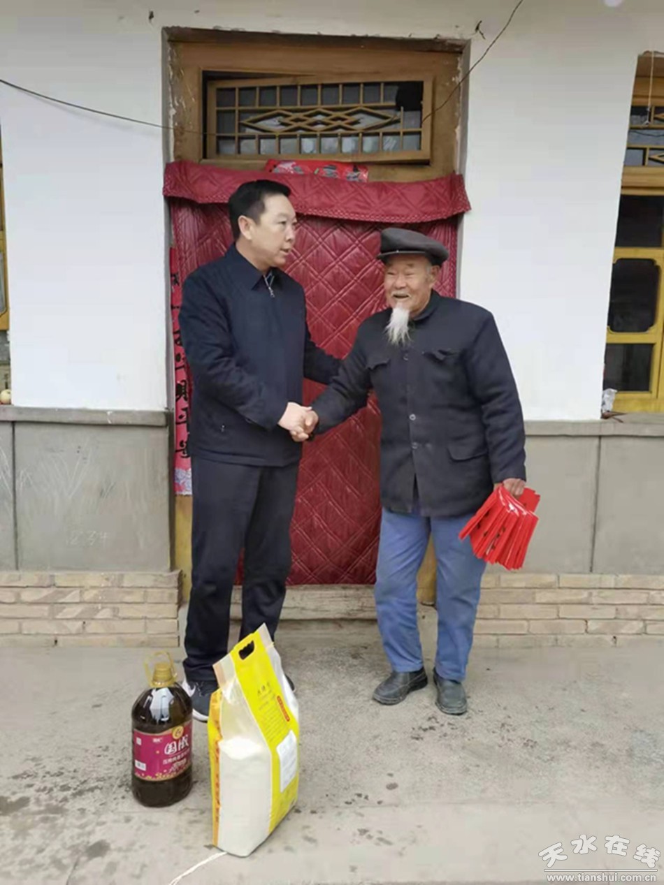1月20日上午,天水市水務(wù)局黨組成員、副局長盛斌一行8人到幫扶村開展走訪慰問送春聯(lián)送溫暖活動。在春節(jié)來臨之際,為幫扶村送上一份溫暖,傳遞一份愛心,讓幫扶村渡過一個溫暖祥和的春節(jié)。