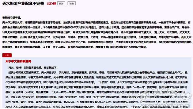 12345政務服務便民熱線是人民群眾與政府之間溝通信息的一個重要橋梁,是幫助訴求人解決生活、生產(chǎn)中所遇困難和問題,是市委、市政府關(guān)注民生、傾聽民意的平臺。市文旅局歷來重視群眾工作,多次召開會議,強調(diào)要高度重視熱線辦理,以群眾滿意為目標,切實增強服務群眾的責任意識,時刻保持為民情懷。本次制定的《天水市文化和旅游局12345政務服務便民熱線辦理工作管理辦法》進一步明確了工作承辦機構(gòu)和內(nèi)部分工,建立了分工明確、運行規(guī)范、監(jiān)管有力的工作機制。