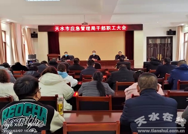 2月7日,春節(jié)長假上班第一天,天水市應急管理局迅速召開干部職工大會,開展收心教育,總結春節(jié)假期安全防范工作情況,分析當前安全形勢和突出問題,部署下一階段重點工作。局領導班子成員、各調研員,局機關、局屬單位全體干部職工參加會議。局黨委書記陶勇同志主持會議并講話,各分管領導就各自分管領域重點工作進行了安排部署。