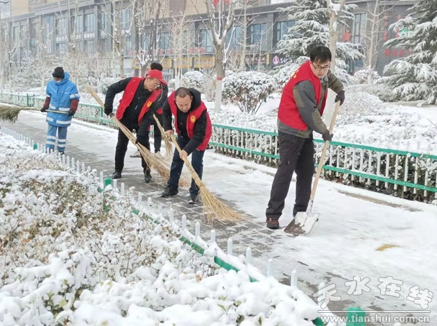 瑞雪兆豐年。2月18日,一場(chǎng)紛紛揚(yáng)揚(yáng)的大雪,不僅凈化了空氣,也增添了一份大自然的美。天水市科協(xié)組織全體黨員干部職工在包抓責(zé)任路段積極開展創(chuàng)城志愿服務(wù)活動(dòng)。