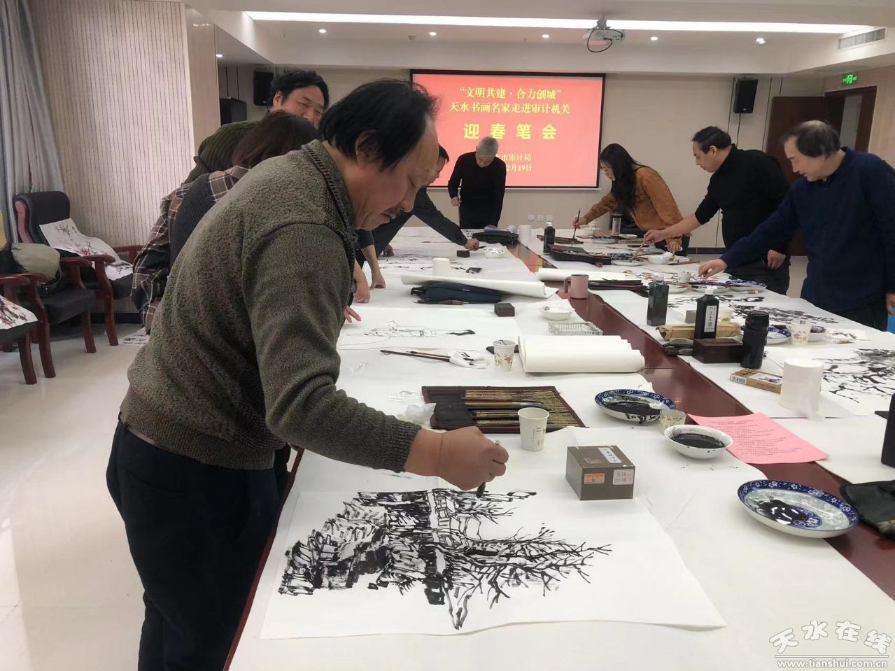 為認(rèn)真貫徹黨的十九屆六中全會(huì)和市第八次黨代會(huì)精神,助力我市全國(guó)文明城市創(chuàng)建工作,推動(dòng)審計(jì)機(jī)關(guān)精神文明和審計(jì)文化建設(shè),2月19日,天水市審計(jì)局舉辦了“文明共建,合力創(chuàng)城”天水書(shū)畫(huà)名家走進(jìn)審計(jì)機(jī)關(guān)迎春筆會(huì)。