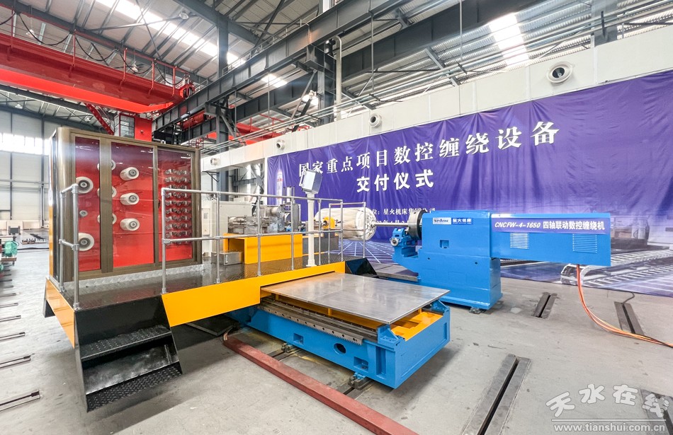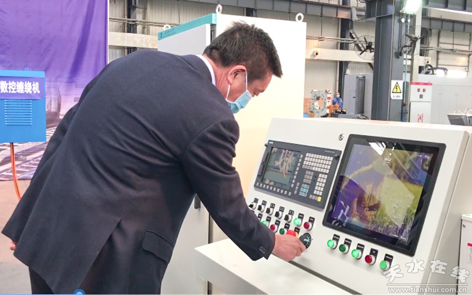 新天水訊【記者童強(qiáng)】4月2日,星火機(jī)床集團(tuán)公司舉行國(guó)家重點(diǎn)項(xiàng)目復(fù)合材料纏繞設(shè)備交付儀式。市委常委、副市長(zhǎng)景丹出席儀式并致辭,市人大常委會(huì)副主任張棟梁按鍵啟動(dòng)試車(chē)。