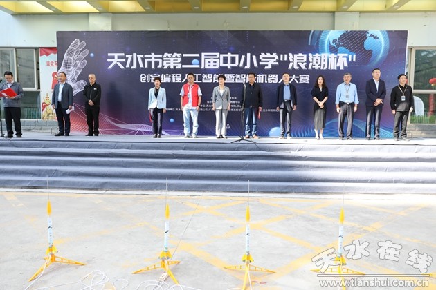 5月28日,天水市第二屆中小學“浪潮杯”創(chuàng)客編程人工智能暨智能機器人大賽開幕,來自全市10支代表的384名中小學生,分設(shè)小學組、初中組、高中組三個組別,參加人工智能、創(chuàng)客競賽、程序設(shè)計、智能機器人四個大項八個小項的角逐。天水市人民政府副市長汪小娟宣布大賽開幕。