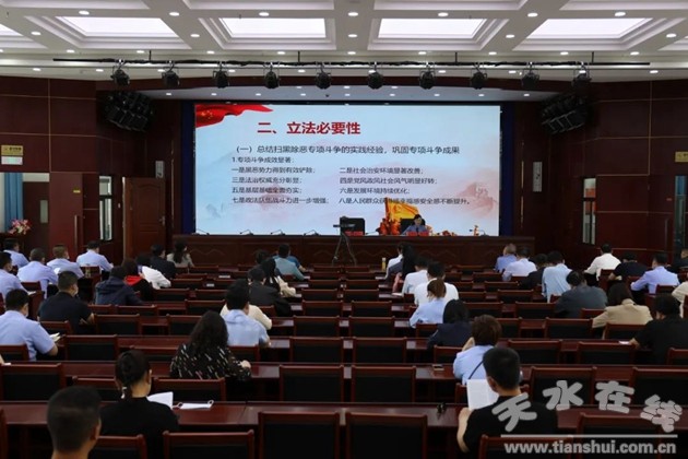 為深入貫徹落實(shí)中央和省、市有關(guān)部署要求,全面推動(dòng)《反有組織犯罪法》貫徹實(shí)施,近日,天水市《反有組織犯罪法》宣講活動(dòng)甘谷縣宣講會(huì)召開,特邀天水市人民檢察院檢察委員會(huì)專職委員劉紅霞作專題宣講,甘谷縣常委、政法委書記杜興主持會(huì)議?h級(jí)政法部門班子成員及業(yè)務(wù)骨干、行業(yè)領(lǐng)域?qū)m?xiàng)整治行動(dòng)責(zé)任單位分管領(lǐng)導(dǎo)和業(yè)務(wù)骨干、縣掃黑辦全體成員在主會(huì)場(chǎng)參加會(huì)議,各鄉(xiāng)鎮(zhèn)政法委員、綜治中心主任、各鄉(xiāng)鎮(zhèn)掃黑辦、派出所、司法所、法庭及行業(yè)領(lǐng)域?qū)m?xiàng)整治行動(dòng)責(zé)任單位基層站所負(fù)責(zé)人在分會(huì)場(chǎng)參加會(huì)議。