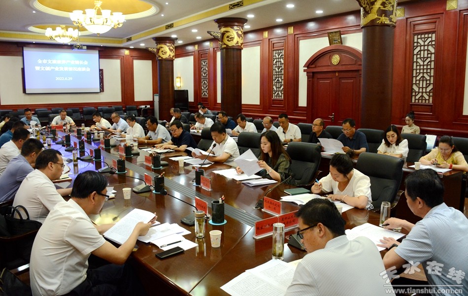 6月29日上午,天水市文旅康養(yǎng)產(chǎn)業(yè)鏈長會暨文創(chuàng)產(chǎn)業(yè)發(fā)展情況座談會在市政府常務(wù)會議室召開,副市長劉國軍出席并作了講話。市直有關(guān)單位、駐市部分金融機構(gòu)和文創(chuàng)企業(yè)代表共40余人參加會議,并進行交流發(fā)言。