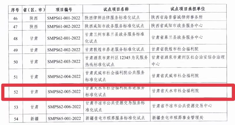 近日,國家標準化管理委員會公布了2022年度社會管理和公共服務綜合標準化試點項目考核評估合格名單,市社會福利院承擔的養(yǎng)老服務標準化試點通過國家標準化管理委員會考核評估,成為我市第一家國家級社會管理和公共服務標準化試點合格單位。