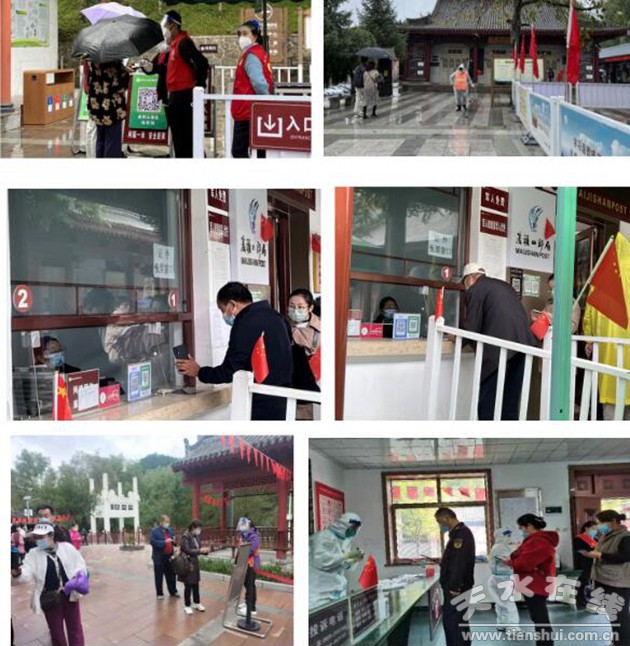 麥積山大景區(qū)管委會(huì)按照文化和旅游部發(fā)布的《旅游景區(qū)恢復(fù)開放疫情防控措施指南(2020年9月修訂版)》的部署要求,落實(shí)網(wǎng)上預(yù)約制度,切實(shí)做好“限量、預(yù)約、錯(cuò)峰”的工作要求,全面推行線上分時(shí)段售票入景區(qū)、引導(dǎo)游客錯(cuò)峰游覽,嚴(yán)格執(zhí)行“一掃三查三報(bào)告”,即:掃場所碼,查健康碼、行程卡和核酸檢測情況。省外游客需持48小時(shí)以內(nèi)陰性核酸檢測報(bào)告,省內(nèi)游客需持72小時(shí)陰性核酸檢測報(bào)告。完善防控應(yīng)急預(yù)案,游客進(jìn)入景區(qū)時(shí)須進(jìn)行“健康碼”亮碼核驗(yàn)、測體溫、戴口罩并出示預(yù)約購票成功信息。在景區(qū)入口、觀光車停車點(diǎn)設(shè)置“一米線”引導(dǎo)游客保持安全距離,有序接受檢票、乘車,減少游客扎堆帶來的風(fēng)險(xiǎn)。對公共場所和景區(qū)內(nèi)設(shè)施及時(shí)全面消毒消殺,落實(shí)落細(xì)疫情常態(tài)化防控,加強(qiáng)員工安全防護(hù),扎實(shí)做好各項(xiàng)應(yīng)急處置工作,確保景區(qū)安全有序向公眾開放。