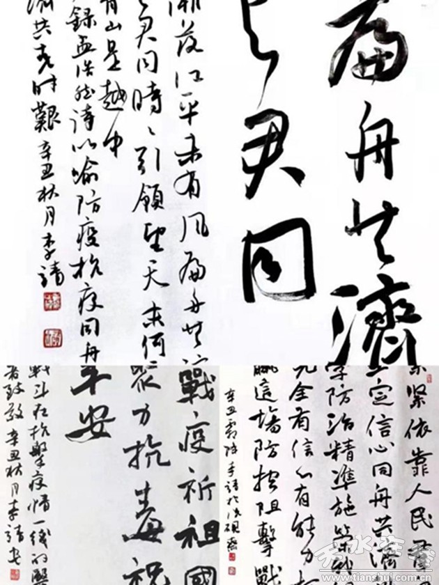 書畫藝術(shù)繪天水。開展“百里石窟走廊·百里生態(tài)風(fēng)情”“頌脫貧攻堅(jiān)成果·繪鄉(xiāng)村振興畫卷”等系列寫生采風(fēng)活動(dòng),創(chuàng)作描繪美麗天水的書畫作品千余幅。舉辦了天水美術(shù)館年展、隴東南歷史名人及近現(xiàn)代書畫名家作品收藏展、中國夢(mèng)·絲路情--中國書畫名家走進(jìn)天水展等展覽活動(dòng)?挂咦髌肪廴诵摹L(hào)召全市廣大文藝工作者創(chuàng)作短視頻、詩朗誦、歌舞、小品、書畫等各類抗疫文藝作品1462個(gè)!耙运嚳挂摺卑l(fā)揮凝心聚力、提振信心的重要作用。