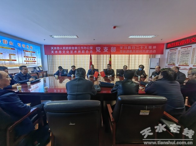 為深入學(xué)習(xí)宣傳貫徹黨的二十大精神,促進單位結(jié)對共建質(zhì)量,營造機關(guān)勤奮學(xué)習(xí)、健康向上、擔(dān)當(dāng)作為、高質(zhì)量發(fā)展的良好氛圍,11月15日下午,市金融辦黨支部與市文聯(lián)機關(guān)黨支部聯(lián)合舉辦了“學(xué)習(xí)踐行二十大精神 文化進機關(guān)結(jié)對共建”活動。
