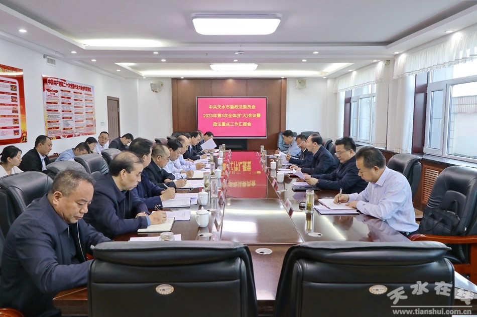天水日報訊【新天水·天水日報記者馬凱】4月19日,市委常委、政法委書記邵建斌主持召開市委政法委員會2023年第三次全體(擴(kuò)大)會議暨政法重點(diǎn)工作匯報會議,集中學(xué)習(xí)習(xí)近平法治思想,傳達(dá)學(xué)習(xí)省、市有關(guān)會議精神,聽取市級政法各單位主動創(chuàng)穩(wěn)行動和“鑄忠誠警魂”活動開展情況匯報,聚焦政治安全、維護(hù)穩(wěn)定、市域社會治理、優(yōu)化法治化營商環(huán)境、政法隊伍建設(shè)等重點(diǎn)工作,研究部署高質(zhì)量推進(jìn)的具體措施,確保主動創(chuàng)穩(wěn)的政法主戰(zhàn)責(zé)任落細(xì)落實(shí)。