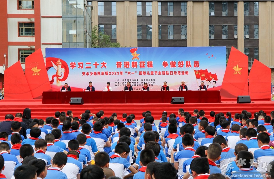 天水日報訊【新天水·天水日報記者李欣桐】5月30日,在“六一”國際兒童節(jié)來臨之際,團(tuán)市委、市少工委在天水市建二小學(xué)舉行“學(xué)習(xí)二十大·奮進(jìn)新征程·爭做好隊員”主題隊日示范活動。市委副書記楊曉鋒,市人大常委會黨組副書記、一級巡視員索鴻賓,副市長汪小娟,市政協(xié)副主席馬勤學(xué)出席活動。