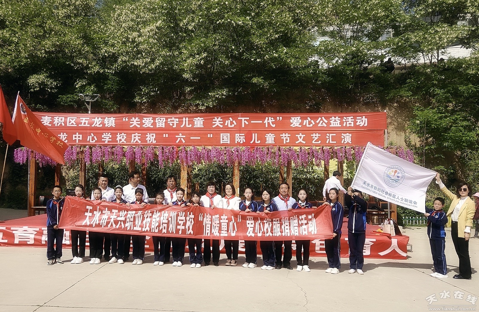 5月30日,天水市新的社會階層人士聯(lián)誼會副會長單位天水市天興職業(yè)技能培訓學校向麥積區(qū)五龍鎮(zhèn)中心學校孩子們送去愛心校服381套,共同為孩子們慶!傲 ”國際兒童節(jié)。