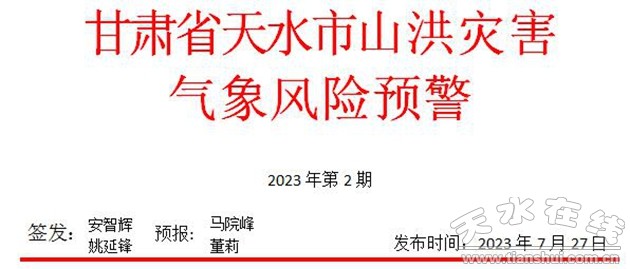天水市水務局與天水市氣象局7月27日09時20分聯(lián)合發(fā)布