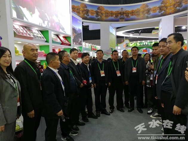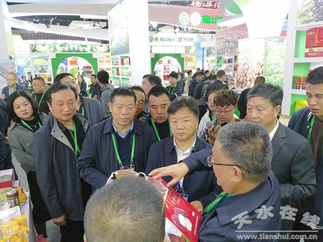 農業(yè)農村部農產品質量安全監(jiān)管司司長肖放、中國綠色食品發(fā)展中心主任金發(fā)忠在甘肅省農業(yè)農村廳黨組成員、副廳長常宏的陪同下先后到天水展位巡展。甘肅省綠色食品辦公室主任滿潤在天水市農業(yè)農村局副局長夏草等相關人員的陪同下先期查看了天水展位的所有產品。