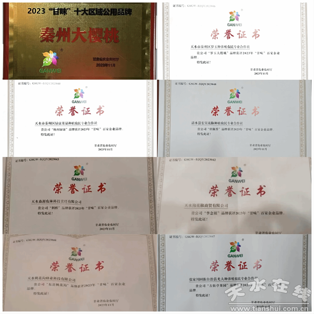 11月16日,由甘肅省農(nóng)業(yè)農(nóng)村廳、《中國(guó)品牌》雜志社聯(lián)合主辦的2023中國(guó)區(qū)域農(nóng)業(yè)品牌發(fā)展論壇(甘肅)冬季峰會(huì)暨“甘味”品牌高質(zhì)量發(fā)展論壇在蘭州舉行,甘肅省農(nóng)業(yè)農(nóng)村廳發(fā)布2023“甘味”十大地方區(qū)域公用品牌和100家“甘味”企業(yè)品牌,我市推薦的“秦州大櫻桃”入選2023“甘味”十大地方區(qū)域公用品牌、“李念祖”牌花椒等7個(gè)品牌入選100家“甘味”企業(yè)品牌。