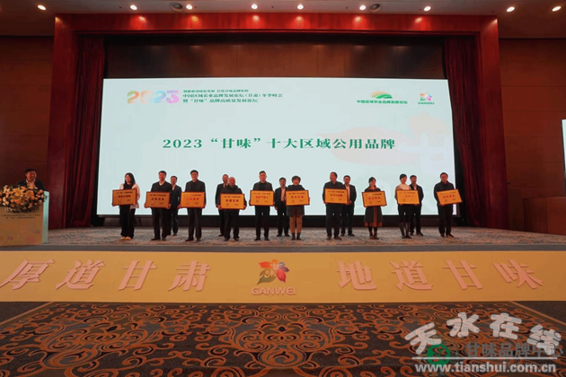 參加2023中國(guó)區(qū)域農(nóng)業(yè)品牌發(fā)展論壇(甘肅)冬季峰會(huì)暨“甘味”品牌高質(zhì)量發(fā)展論壇的有關(guān)領(lǐng)導(dǎo)、專家為獲得2023“甘味”十大地方區(qū)域公用品牌和100家企業(yè)品牌持有主體代表授牌。會(huì)上,甘肅省農(nóng)業(yè)農(nóng)村廳還宣布了2023年新入選《“甘味”農(nóng)產(chǎn)品品牌目錄》的區(qū)域公用品牌和企業(yè)商標(biāo)品牌。