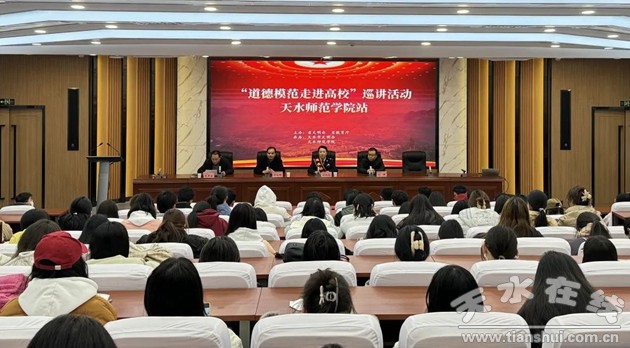 為進(jìn)一步推動習(xí)近平新時代中國特色社會主義思想學(xué)習(xí)走深走實(shí),貫徹落實(shí)全省精神文明建設(shè)工作推進(jìn)大會精神,深入實(shí)施道德培育工程和“大思政課”建設(shè)工程,12月28日上午,由省文明辦、省教育廳主辦,天水市文明辦、天水師范學(xué)院承辦的甘肅省“道德模范走進(jìn)高!毖仓v活動在天水師范學(xué)院舉行。