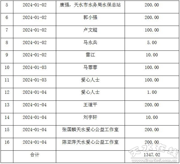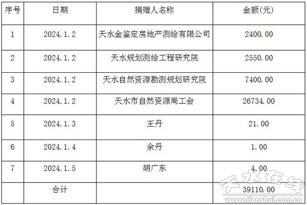 一、天水市紅十字會微信公眾號接收捐款明細(xì)如下: