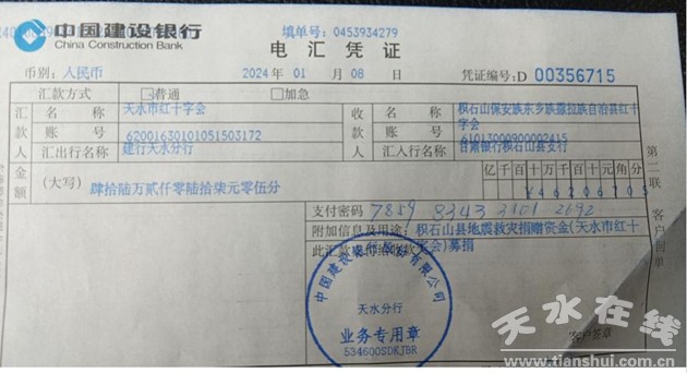 天水市紅十字會關(guān)于向積石山抗震救災(zāi)捐贈情況的公示