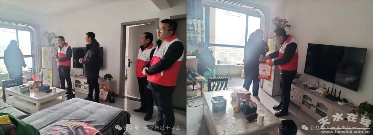 天水市:春節(jié)前夕,市紅十字會(huì)黨員干部積極行動(dòng),扎實(shí)開展“紅十字博愛送萬(wàn)家”活動(dòng),班子成員分別走訪慰問了秦州區(qū)七里墩街道辦事處岷山社區(qū)、羅玉第二社區(qū)特困家庭和麥積區(qū)三岔鎮(zhèn)葡萄村、水關(guān)村、甘谷縣新興鎮(zhèn)、武山縣城關(guān)鎮(zhèn)孤兒、重度殘疾人和特困家庭,并調(diào)撥物資對(duì)全市麻風(fēng)病患者進(jìn)行了走訪慰問。市紅十字會(huì)慰問人員與受慰問群眾親切交談,詳細(xì)了解家庭成員身體狀況和學(xué)習(xí)工作情況,鼓勵(lì)大家保重身體,保持樂觀向上的精神狀態(tài),向他們送去了黨和政府的關(guān)懷和溫暖。