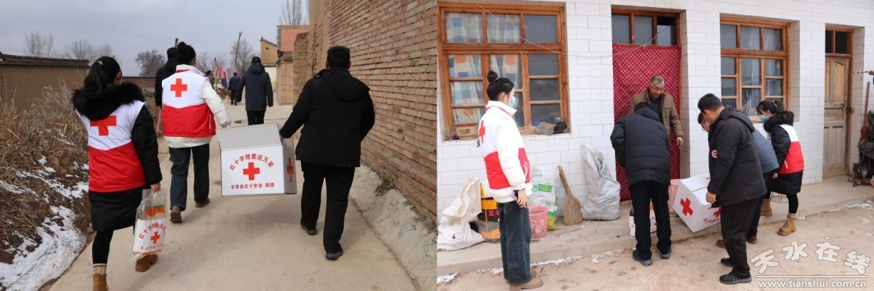 甘谷縣:1月23日至2月1日,先后深入到安遠(yuǎn)、新興、大莊、武家河等鄉(xiāng)鎮(zhèn)走訪慰問孤寡老人、五保戶、低保戶、“結(jié)對(duì)幫扶·愛心甘肅”工程結(jié)對(duì)幫扶對(duì)象200余戶困難家庭,細(xì)心查看困難群眾的居住環(huán)境,并與他們進(jìn)行親切交流,詳細(xì)了解他們的生產(chǎn)生活和身體狀況,并將棉衣,棉被,米油,慰問包等物資送到困難群眾手中。在武家河鎮(zhèn)開展走訪慰問活動(dòng)時(shí),還開展了應(yīng)急救護(hù)普及培訓(xùn)。