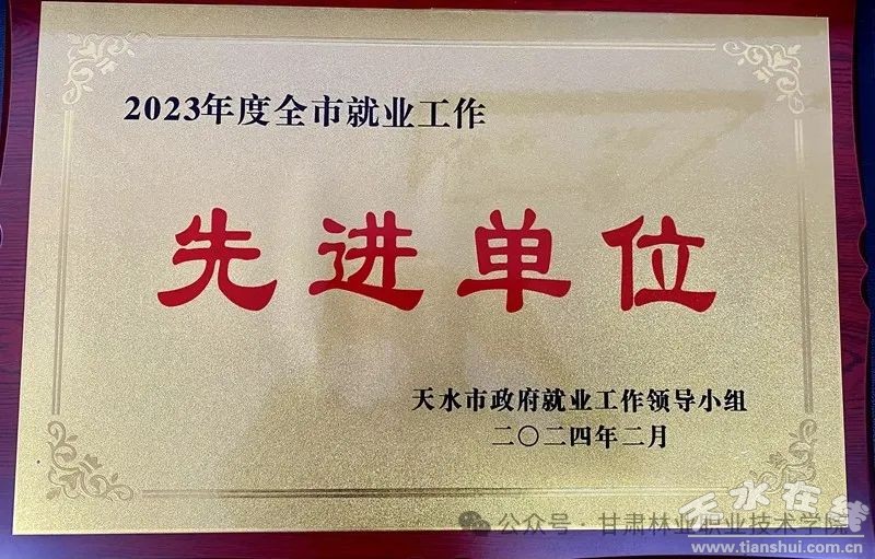 2月26日,天水市政府就業(yè)工作領(lǐng)導小組印發(fā)《關(guān)于2023年度全市就業(yè)工作先進縣區(qū)先進單位先進企業(yè)的通報》,我院榮獲2023年度天水市就業(yè)工作先進單位稱號。