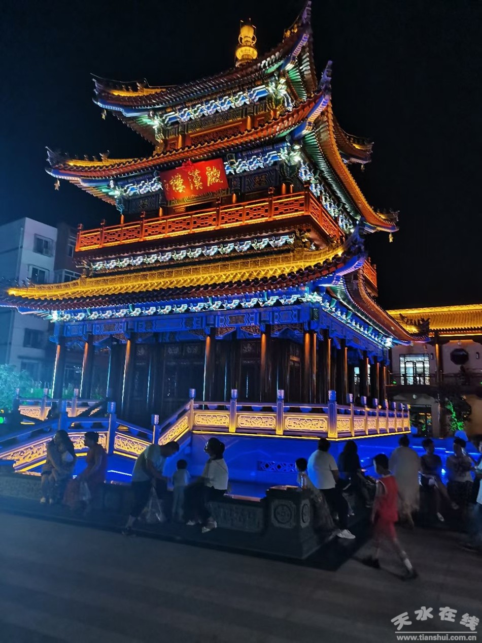 【打卡啟漢樓】啟漢樓原位于西關(guān)古城西城門(mén)上,重檐歇山兩層木樓,與伏羲城東城門(mén)相向。上世紀(jì)五十年代初,城樓毀圮。二零二一年復(fù)建于此,是一座三重檐廡殿頂仿古建筑。樓內(nèi)外采用金龍和璽彩繪,圖案以形態(tài)不一的龍為主。將描金工藝融入其中,使其金碧輝煌,極具觀賞價(jià)值。