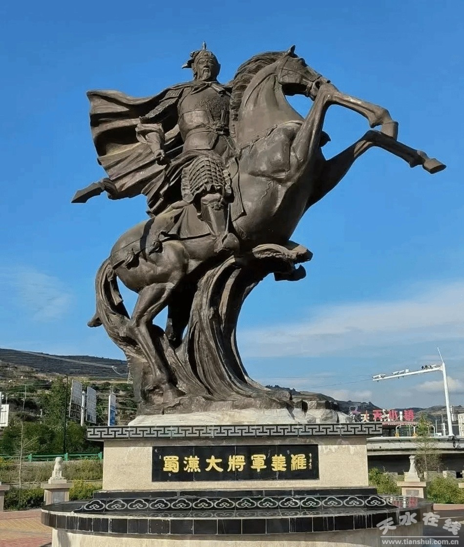 天水關(guān)是諸葛亮六出祁山時(shí)智收姜維的地方,至此蜀漢有了接班人。天水關(guān)文化廣場(chǎng)有姜維雕像,騎馬揮槍?zhuān)湫蹓,盡顯英雄本色。山上有姜維墓。