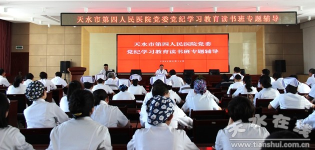 5月14日,天水市四院召開黨紀學習教育讀書班專題輔導會議,院黨委班子成員、各黨支部書記、支部委員、中層干部和廣大黨員參加會議。