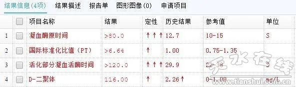 (備注:PT、APTT、INR、FIB超出檢測范圍、無法測出,D-二聚體顯著升高)