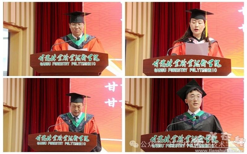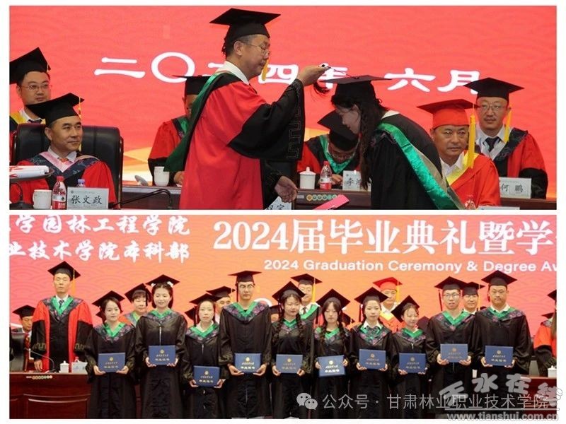 在畢業(yè)典禮上,本科部負(fù)責(zé)人宣讀了《甘肅農(nóng)業(yè)大學(xué)關(guān)于表彰2024屆校級(jí)優(yōu)秀本科畢業(yè)論文(設(shè)計(jì))及優(yōu)秀指導(dǎo)教師的決定》《園林工程學(xué)院關(guān)于表彰2024屆優(yōu)秀畢業(yè)生的決定》,農(nóng)大研究生院負(fù)責(zé)人宣讀了《甘肅農(nóng)業(yè)大學(xué)關(guān)于授予戴建旭等314名同學(xué)學(xué)位的決定》;與會(huì)領(lǐng)導(dǎo)為獲獎(jiǎng)師生代表頒獎(jiǎng),為2024屆本科畢業(yè)生頒發(fā)畢業(yè)證、授予學(xué)位;教師代表阮國(guó)杰、畢業(yè)生代表王斌斌分別作了發(fā)言。