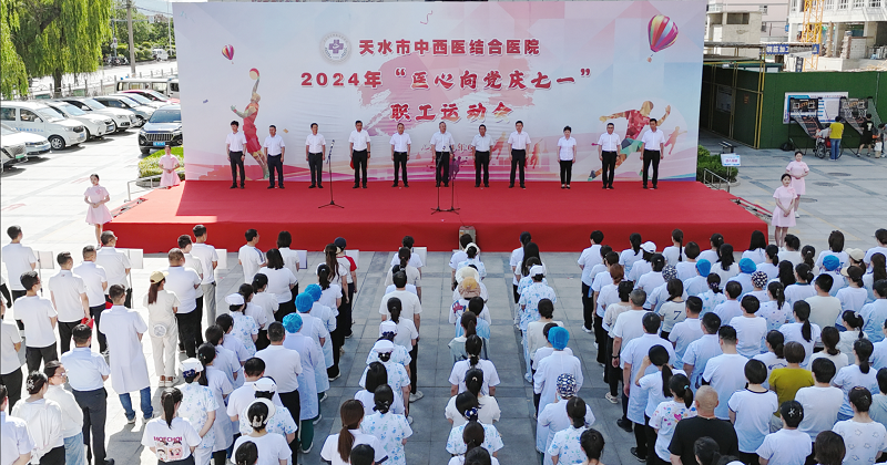 為大力弘揚(yáng)全民健身的體育文化精神,激發(fā)廣大職工開拓進(jìn)取的工作熱情,增強(qiáng)凝聚力、向心力,展現(xiàn)醫(yī)務(wù)人員頑強(qiáng)拼搏、團(tuán)結(jié)奮進(jìn)的良好精神風(fēng)貌。6月24日,天水市中西醫(yī)結(jié)合醫(yī)院在院本部舉辦2024年“醫(yī)心向黨慶七一”為主題的職工運(yùn)動(dòng)會(huì)。特邀市衛(wèi)健委黨組書記、主任王定新,麥積區(qū)委常委、宣傳部部長(zhǎng)溫建軍和區(qū)衛(wèi)健局黨組書記、局長(zhǎng)陶俊杰出席開幕式。開幕式由院黨委副書記、院長(zhǎng)唐志鋒主持。院領(lǐng)導(dǎo)和運(yùn)動(dòng)員、裁判員及職工代表約200余人參加了開幕式。